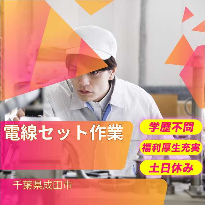 入社祝い金:あり 【入社祝い金】 有り 交通費 支給なし 応募の流れ 本ページ内<応募する>ボタンより、必要項目をご入力の上、ご応募ください。 勤務地 【勤務地】千葉県成田市成井 勤務時間 【勤務地】【日勤】