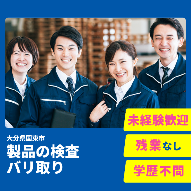 時給例:987円 交通費 支給なし 応募の流れ 本ページ内<応募する>ボタンより、必要項目をご入力の上、ご応募ください。 勤務地 【勤務地】大分県国東市国見町向田 勤務時間 【勤務地】【日勤】