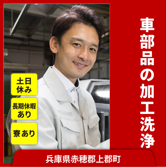 就業場所:無/就業範囲:無 エアーで削りかすを飛ばし、機械の扉部分を開け、自動車部品を機械にセットし、ストッパーを留め、扉を閉めてボタンを押すと加工が始まり、終わるとストッパーを外し、お湯で軽くすすいだ後、エアーをかけ水滴を飛ばします。