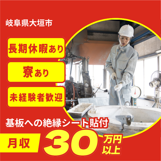 給与詳細 月収例 323,670円 日給例 12,000円 勤務地 岐阜県大垣市 仕事内容 【業務内容】