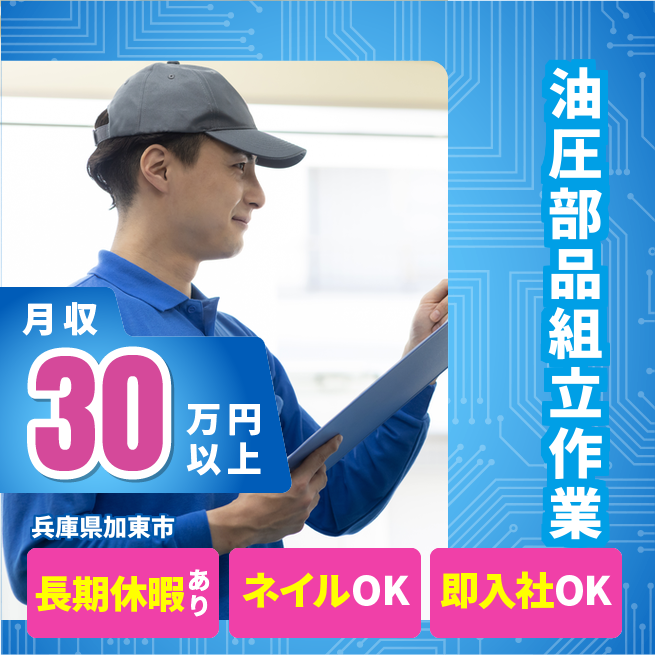 給与詳細 月収例 322,295円 日給例 11,620円 勤務地 兵庫県加東市 仕事内容 【業務内容】