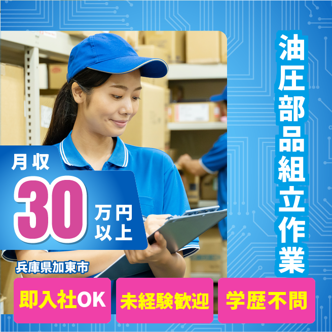 給与詳細 月収例 322,295円 日給例 11,620円 勤務地 兵庫県加東市 仕事内容 【業務内容】