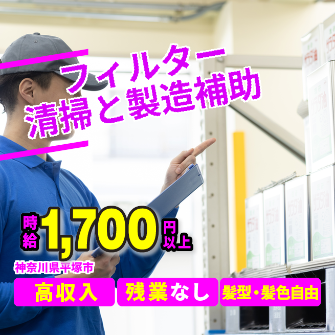 安心の日勤【フィルター清掃と製造補助】