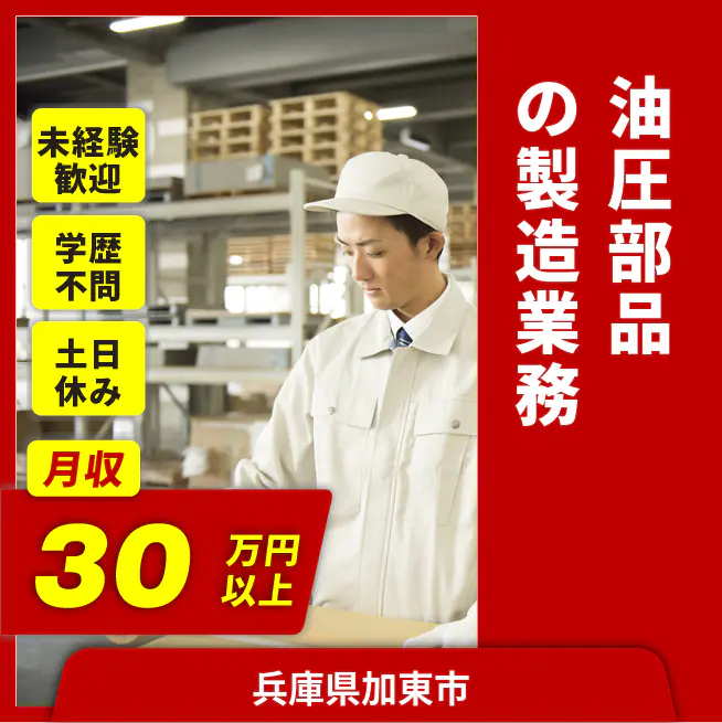 未経験からでも始められる、加東市での油圧部品製造に関する業務です。