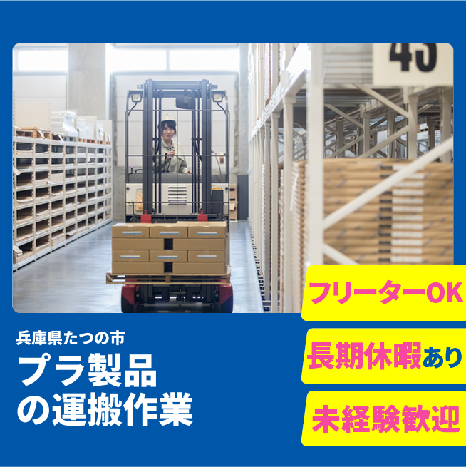 時給例:1212円 交通費 支給なし 応募の流れ 本ページ内<応募する>ボタンより、必要項目をご入力の上、ご応募ください。 勤務地 【勤務地】兵庫県たつの市揖保川町新在家 勤務時間 【勤務地】【日勤】