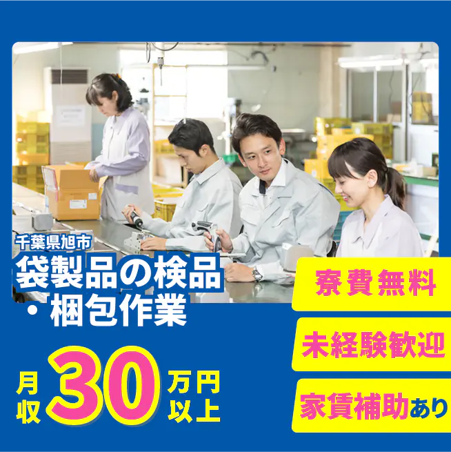 給与詳細 月収例 312,000円 日給例 10,465円 勤務地 千葉県旭市 仕事内容 【業務内容】