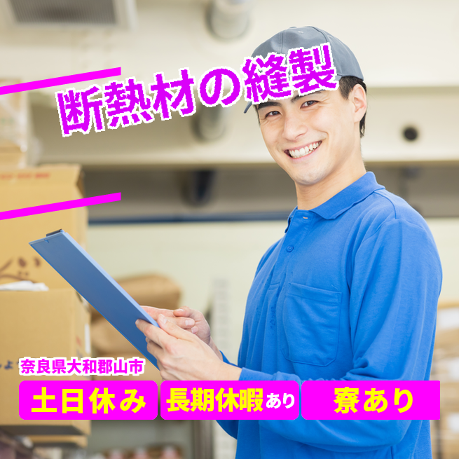 給与詳細 月収例 196,320円 時給例 1,227円 勤務地 奈良県大和郡山市 仕事内容 【縫製業務】
