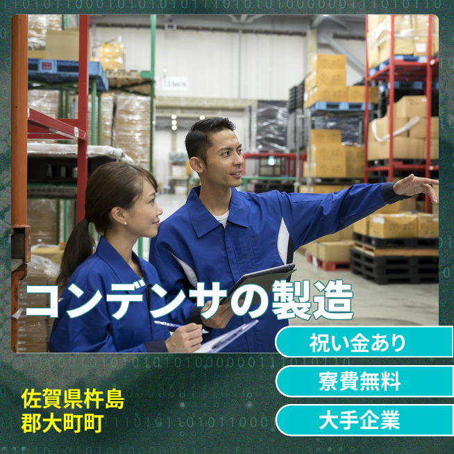 引っ越し費用:本人移動費用は会社負担いたしますが、荷物送料は自己負担となります。 4班2交替で月の半分は休みで、更にGW・夏季休暇・年末年始の長期休暇と年間190日がお休みです。また、工場内には食堂2か所・売店・喫煙ブースがあり、休憩時間は外出も可。お昼休みには近くのコンビニや飲食店で食事される方もいます。佐賀拠点は、創業当初から一貫して電子機器で使用される電子デバイス、コンデンサの開発・製造を行っています。電解液を使用したアルミ電解コンデンサが主流の中、世界で初めて電解液を使用しない固体コンデンサの事業化に成功。さらに、1995年から導電性高分子アルミ固体電解コンデンサ「OS-CON」、1999年から導電性高分子タンタル固体電解コンデンサ「POSCAP」を開発・製造し、業界のパイオニアとして最先端の技術を支えています。