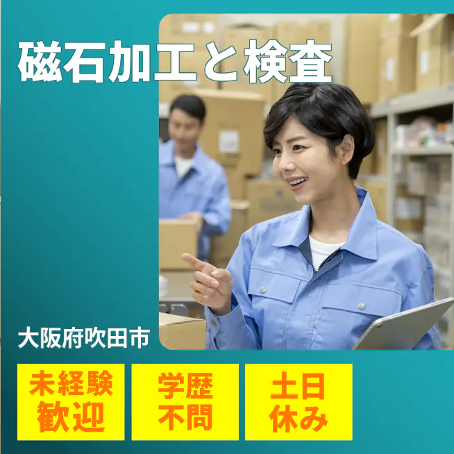 給与詳細 月収例 229,335円 日給例 10,264円 勤務地 大阪府吹田市 仕事内容 【業務内容】製品の検査・組立・加工・出荷業務