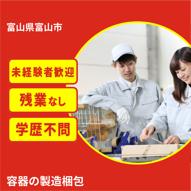 給与詳細 月収例 190,045円 時給例 1,031円 勤務地 富山県富山市 仕事内容 芳香剤を入れるプラスチック容器の製造や