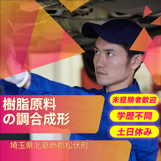 給与詳細 月収例 251,000円 日給例 11,300円 勤務地 埼玉県北葛飾郡松伏町 仕事内容 樹脂と薬剤を混合し原料を作成します。