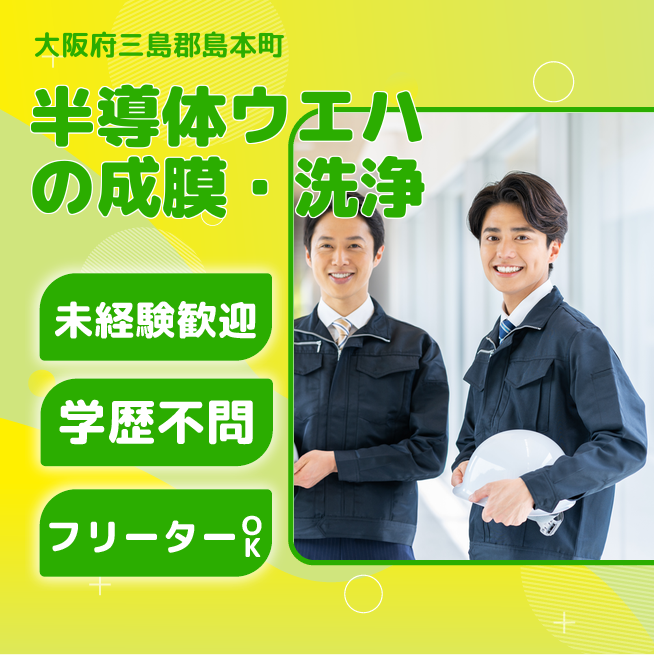 給与詳細 月収例 288,152円 日給例 10,785円 勤務地 大阪府三島郡島本町 仕事内容 半導体ウエハの成膜から洗浄、検査までを行います。