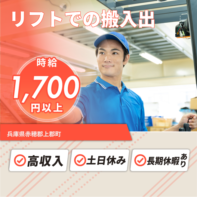 給与詳細 月収例 276,250円 時給例 1,700円 勤務地 兵庫県尼崎市 仕事内容 随時搬入される製品をフォークリフトを使ってのピッキング業務がメインの業務になります。
