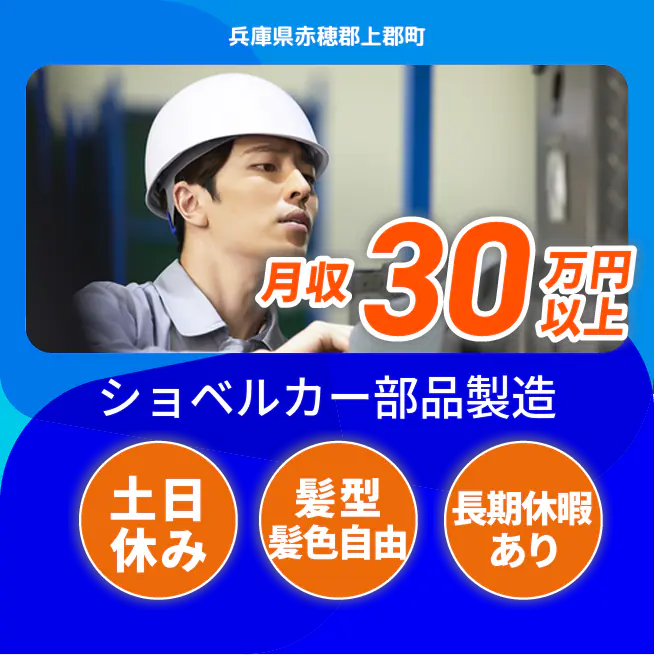 給与詳細 月収例 292,500円 日給例 10,400円 勤務地 兵庫県高砂市 仕事内容 【業務内容】