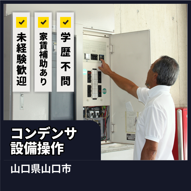給与詳細 月収例 285,543円 日給例 10,450円 勤務地 山口県山口市 仕事内容 【コンデンサーの製造設備のオペレーター】