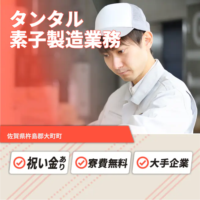 給与詳細 月収例 244,212円 時給例 1,143円 勤務地 佐賀県杵島郡大町町 仕事内容 【業務内容】