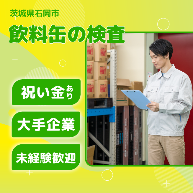 就業場所:無/就業範囲:無 自動装置で製造された飲料缶に不良品があるかどうか、手に取って目視で検査をする作業(外観にキズ・汚れ等が無いか確認)