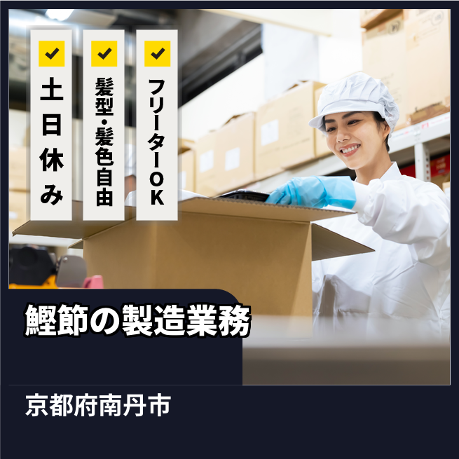 時給例:1200円 交通費 支給なし 応募の流れ 本ページ内<応募する>ボタンより、必要項目をご入力の上、ご応募ください。 勤務地 【勤務地】京都府南丹市八木町玉ノ井北沢 勤務時間 【勤務地】【日勤】