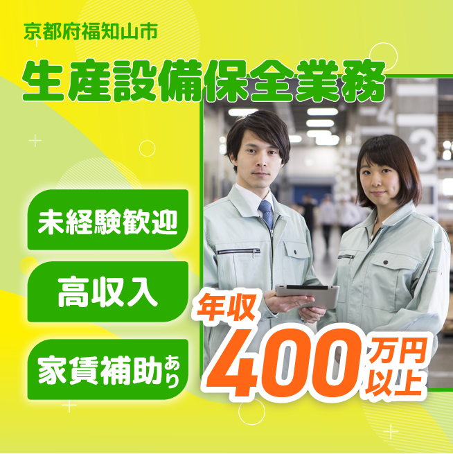 給与詳細 年収例 4,000,032円 月収例 333,336円 勤務地 京都府福知山市 仕事内容 【生産設備保全業務】