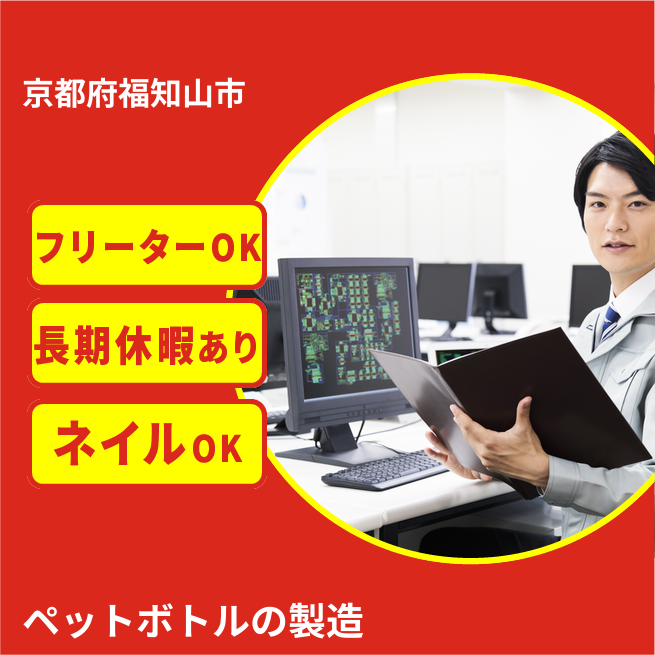 給与詳細 月収例 282,240円 日給例 10,240円 勤務地 京都府福知山市 仕事内容 ①ペットボトルを機械を使って膨らます(ブロー)②ペットボトルを機械を使って洗浄する(洗浄)③ペットボトルに機械を使って水を充填する(充填)④検査をして出荷する