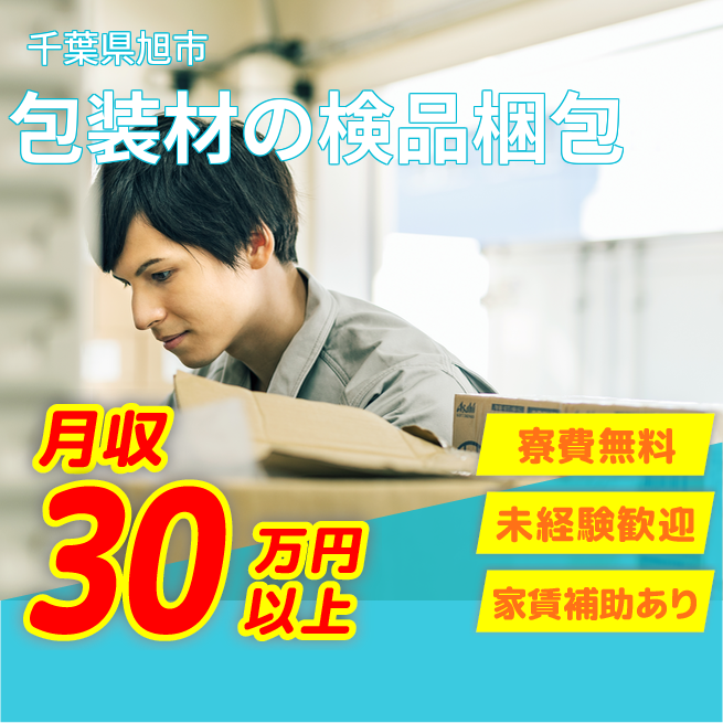 給与詳細 月収例 312,000円 日給例 10,400円 勤務地 千葉県旭市 仕事内容 食品の包装材の最終工程になり、フィルムを貼り合わせ袋状にした製品の検品、梱包作業