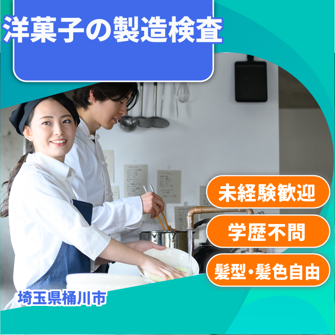 お菓子のライン製造、検品、梱包、仕込み、包装、ライン清掃