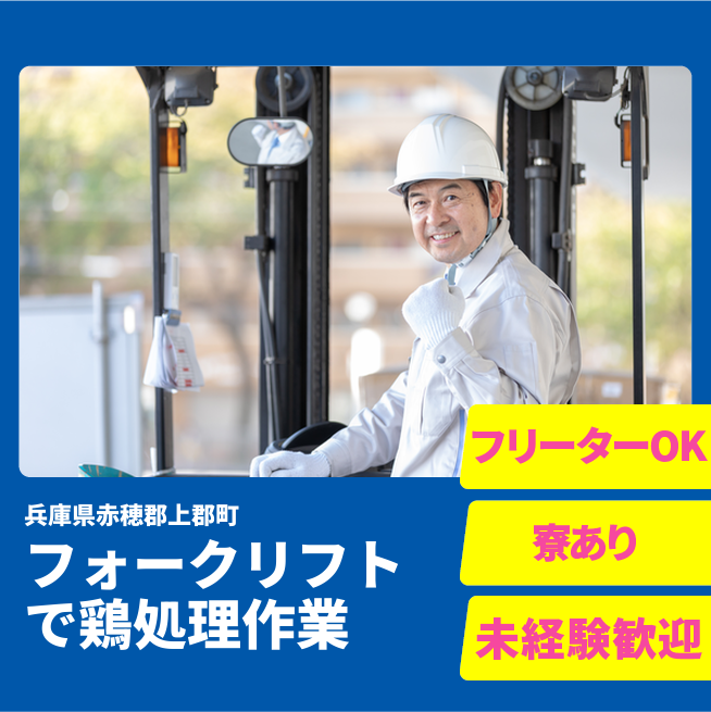 【フォークリフトで鶏処理作業】