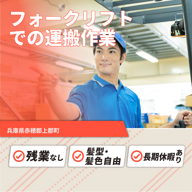 給与詳細 月収例 238,000円 日給例 11,200円 勤務地 兵庫県高砂市 仕事内容 【業務内容】