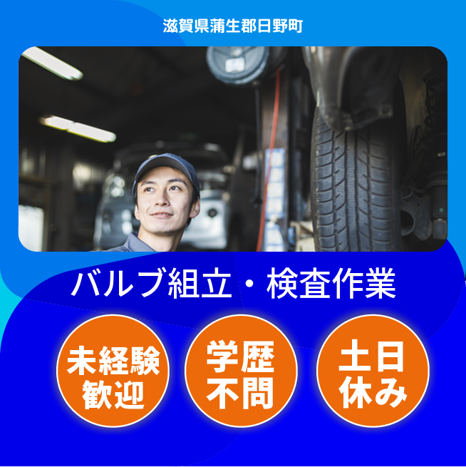 給与詳細 月収例 254,800円 日給例 11,200円 勤務地 滋賀県蒲生郡日野町 仕事内容 【業務内容】バルブの組立と検査、および梱包作業