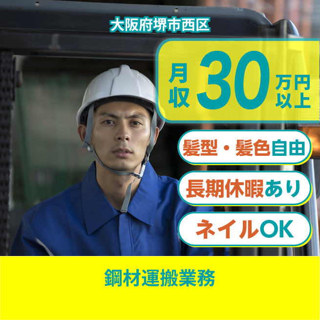 給与詳細 月収例 315,000円 日給例 11,200円 勤務地 大阪府堺市西区 仕事内容 【業務内容】