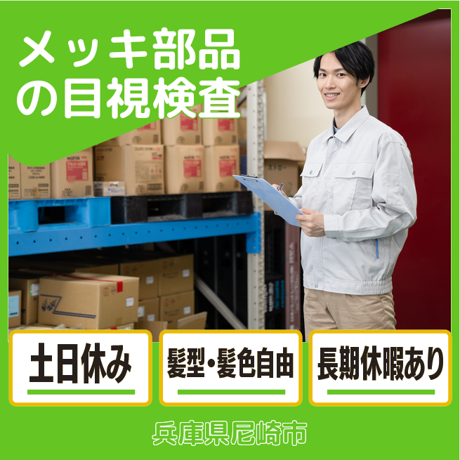 安心の昼勤務【メッキ部品の目視検査】