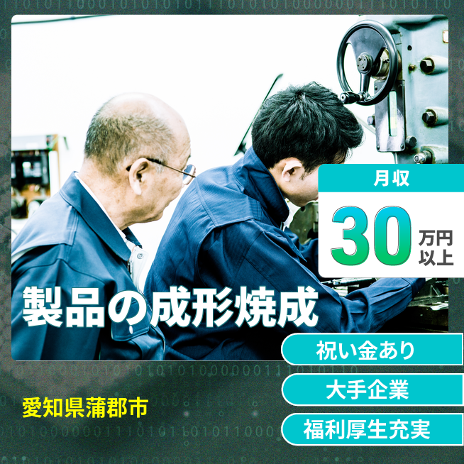 給与詳細 月収例 321,375円 日給例 12,000円 勤務地 愛知県小牧市 仕事内容 工程によって様々な作業がある成形(原料から製品の原型を作る)・焼成(成形された製品を罐で焼き上げる)・加工(焼成された製品に加工を施す)・検査(各工程における製品の検査を行う)等