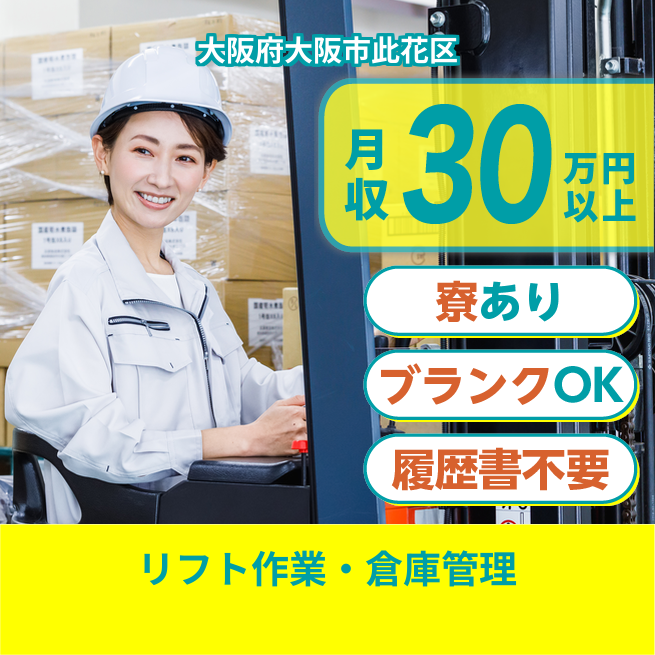 給与詳細 月収例 301,350円 日給例 12,000円 勤務地 大阪府大阪市此花区 仕事内容 【業務内容】