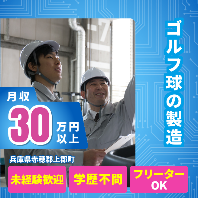 就業場所:無/就業範囲:無 ゴルフボール製造に伴う、成形加工熱処理工程や、コーティング焼き付け、機械オペレート作業及び検査梱包作業を担当して頂きます。