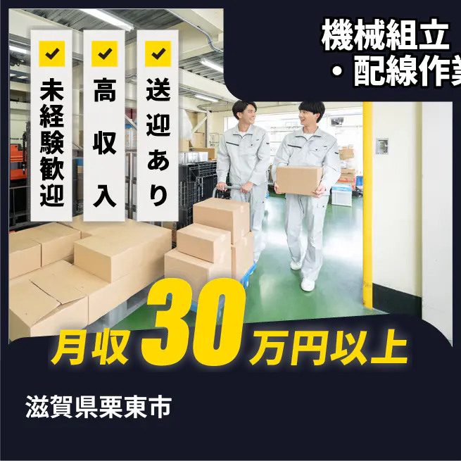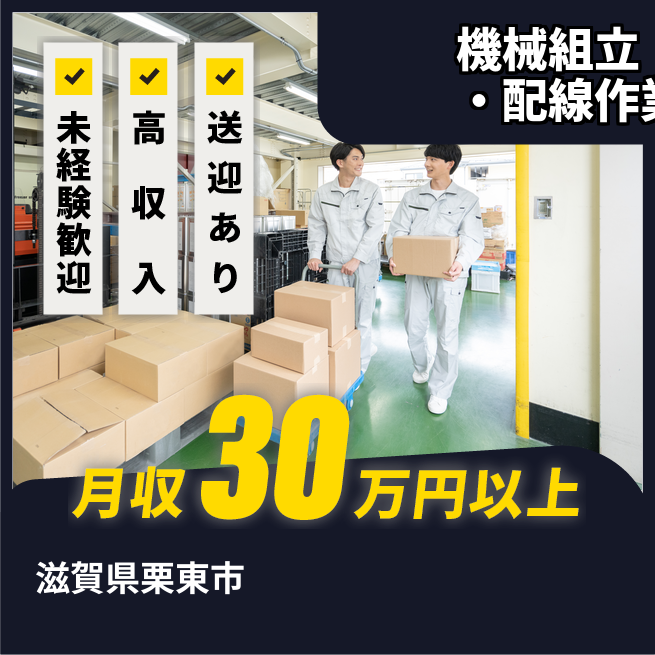 給与詳細 月収例 302,000円 時給例 1,600円 勤務地 滋賀県栗東市 仕事内容 【業務内容】