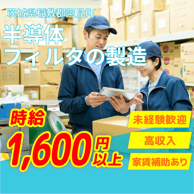 給与詳細 月収例 276,944円 時給例 1,600円 勤務地 茨城県稲敷郡阿見町 仕事内容 【半導体フィルターの製造作業】