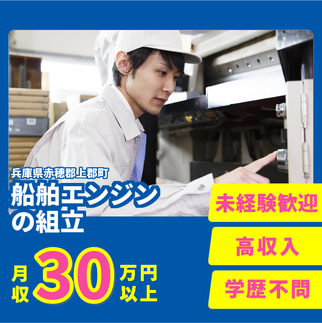 給与詳細 月収例 320,000円 時給例 1,600円 勤務地 兵庫県姫路市 仕事内容 船舶用ディーゼルエンジンを作るお仕事です。