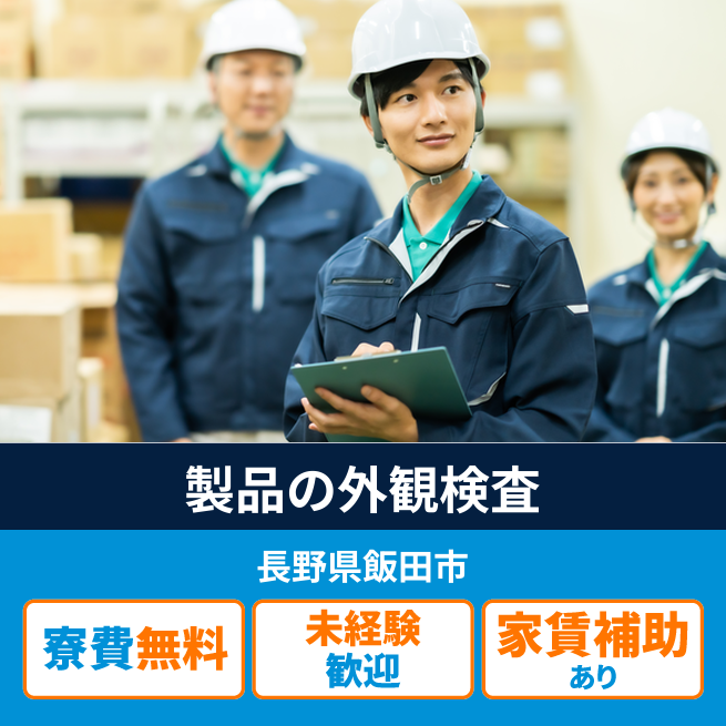 給与詳細 月収例 180,000円 時給例 1,125円 勤務地 長野県飯田市 仕事内容 出来上がった製品の外観を検査する
