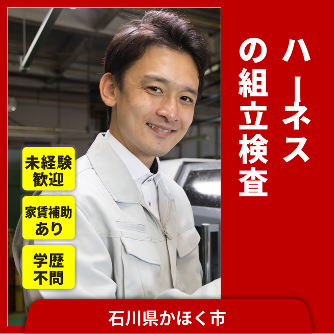 給与詳細 月収例 239,111円 時給例 1,156円 勤務地 石川県かほく市 仕事内容 ワイヤーハーネスの組立、結束、検査作業