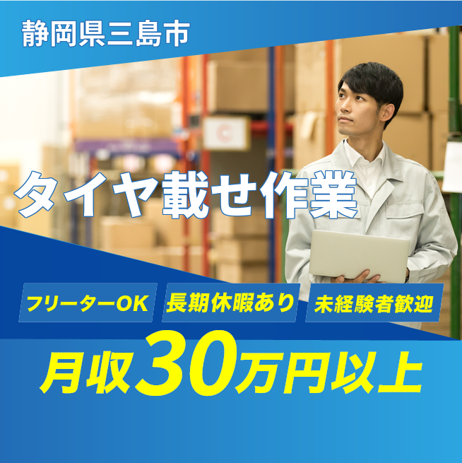 給与詳細 月収例 300,990円 日給例 11,000円 勤務地 静岡県三島市 仕事内容 【業務内容】