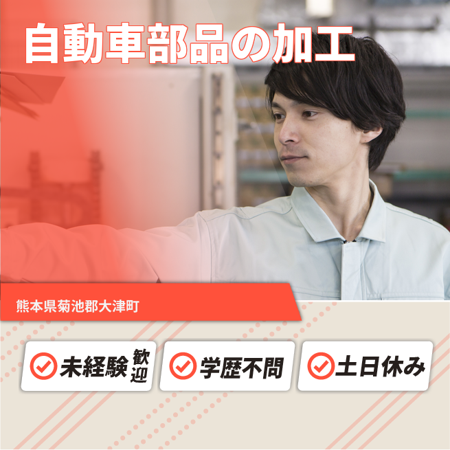 給与詳細 月収例 248,811円 時給例 1,187円 勤務地 熊本県菊池郡大津町 仕事内容 自動車部品、エンジン周りの部品を加工機を操作して製品を製造していただきます