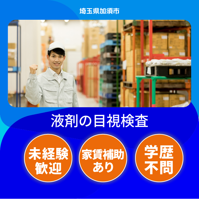 給与詳細 月収例 208,112円 日給例 10,000円 勤務地 埼玉県加須市 仕事内容 【業務内容】
