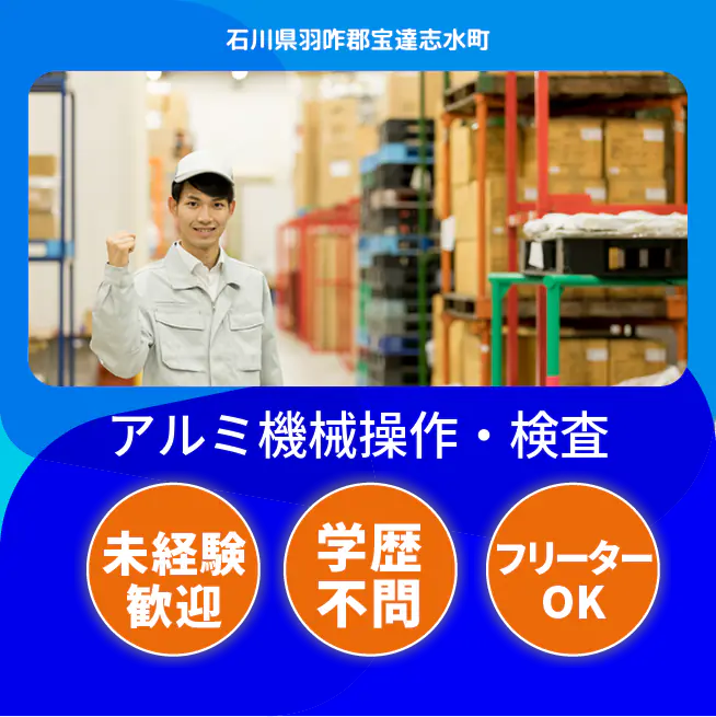 給与詳細 月収例 225,636円 日給例 10,000円 勤務地 石川県羽咋郡宝達志水町 仕事内容 【業務内容】