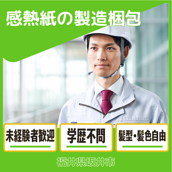 給与詳細 月収例 243,227円 日給例 10,250円 勤務地 福井県坂井市 仕事内容 ・サーマルペーパーの製造業務をお願いします。