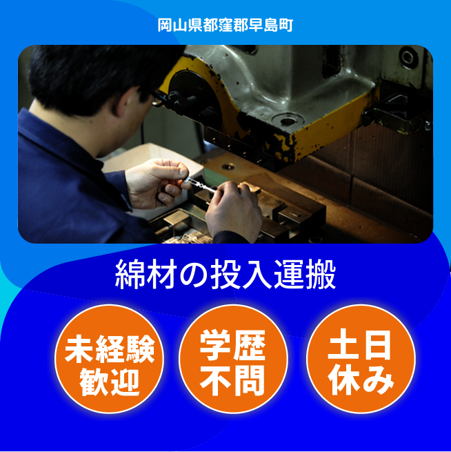 時給例:1343円 交通費 支給なし 応募の流れ 本ページ内<応募する>ボタンより、必要項目をご入力の上、ご応募ください。 勤務地 【勤務地】岡山県都窪郡早島町早島 勤務時間 【勤務地】【3交替】