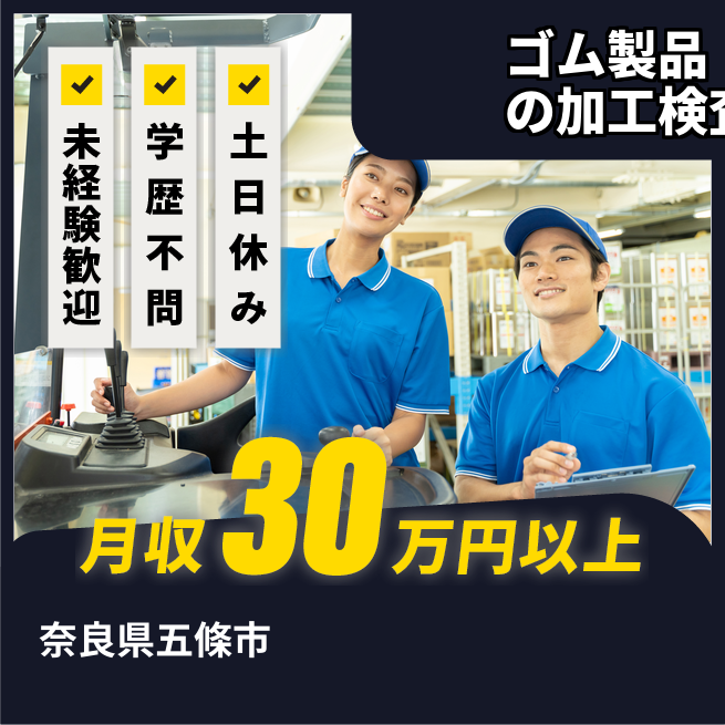 給与詳細 月収例 281,611円 日給例 10,300円 勤務地 奈良県五條市 仕事内容 【ゴム製品(Oリング)の加工業務】