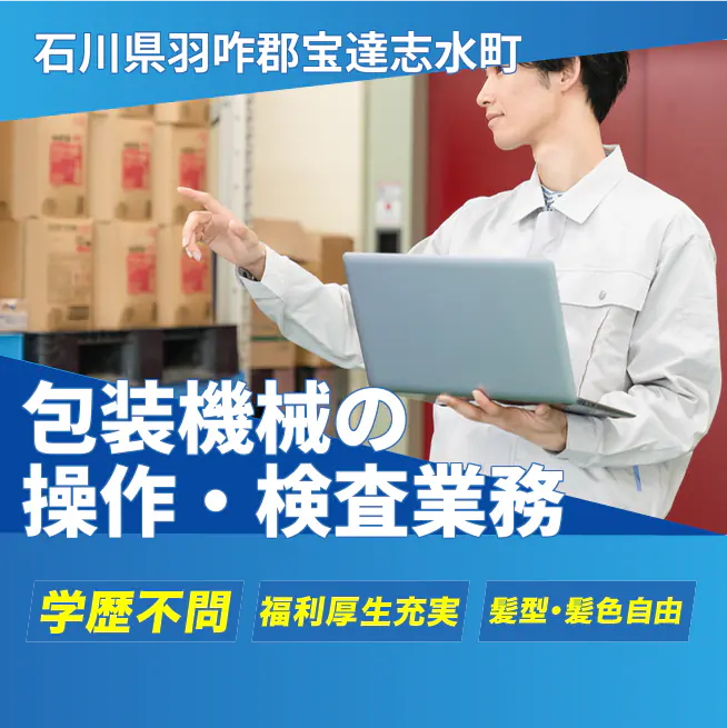 給与詳細 月収例 247,429円 日給例 11,000円 勤務地 石川県羽咋郡宝達志水町 仕事内容 【業務内容】