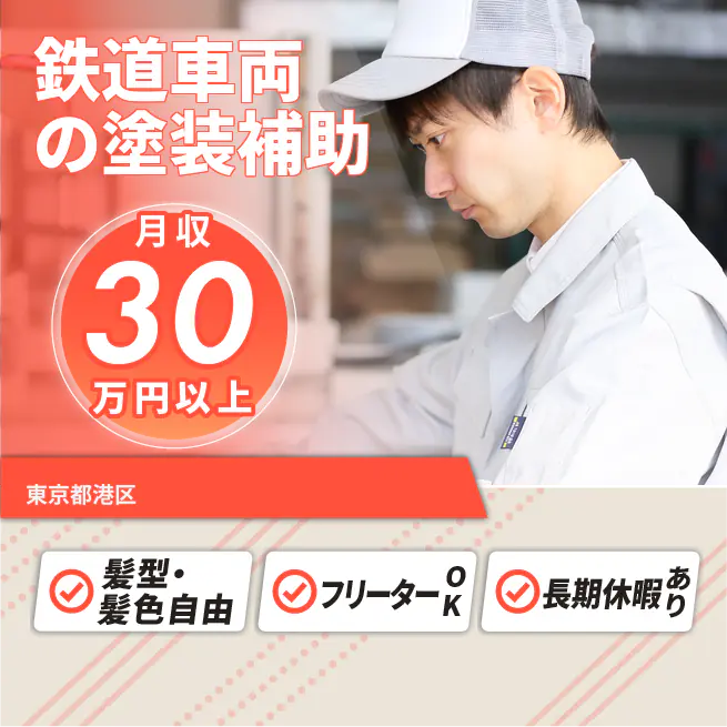 給与詳細 月収例 312,727円 日給例 12,000円 勤務地 東京都港区 仕事内容 【電車の車両の塗装に関する作業】
