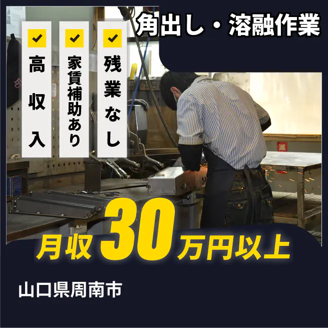 給与詳細 月収例 314,641円 日給例 12,500円 勤務地 山口県周南市 仕事内容 【業務内容】角出し工程における研削と洗浄作業