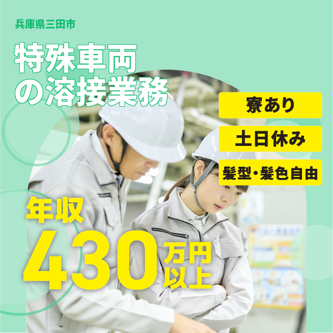 繁忙期に土曜日休日出勤が最大2日/月あります。 必須資格 ・半自動溶接実務経験 福利厚生 残業手当
